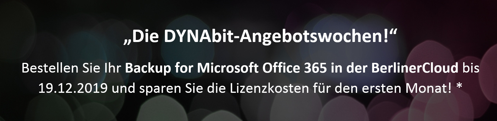 * Unser Angebot: Das BerlinerCloud-Backup für Microsoft Office 365 als Evaluation-Paket. Sie erhalten von uns die Lizenzkosten für 5 Benutzer im ersten Monat gebührenfrei.